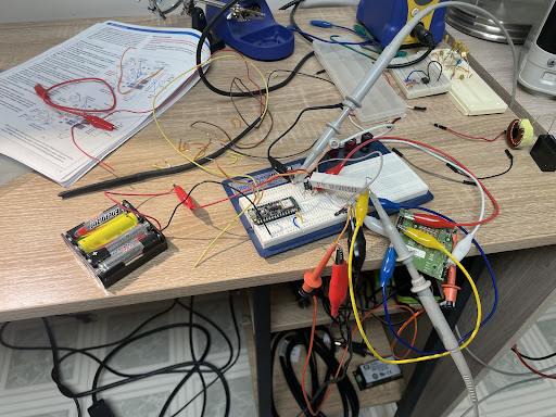 Here’s what it looks like on the bench, if you’re a caveman. For the half bridge I’ve wired in an EPC90121 dev board. No boost stage, just a few AA’s to give something to modulate. No output filter either.
